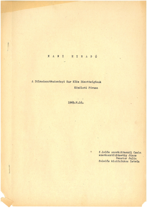 Könczöl, Csaba. Kari Híradó, 1969. Publication