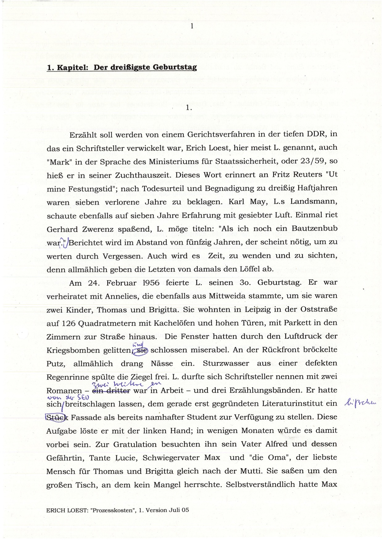 Handschriftlich überarbeitete Typoskripte für Buch „Proze...