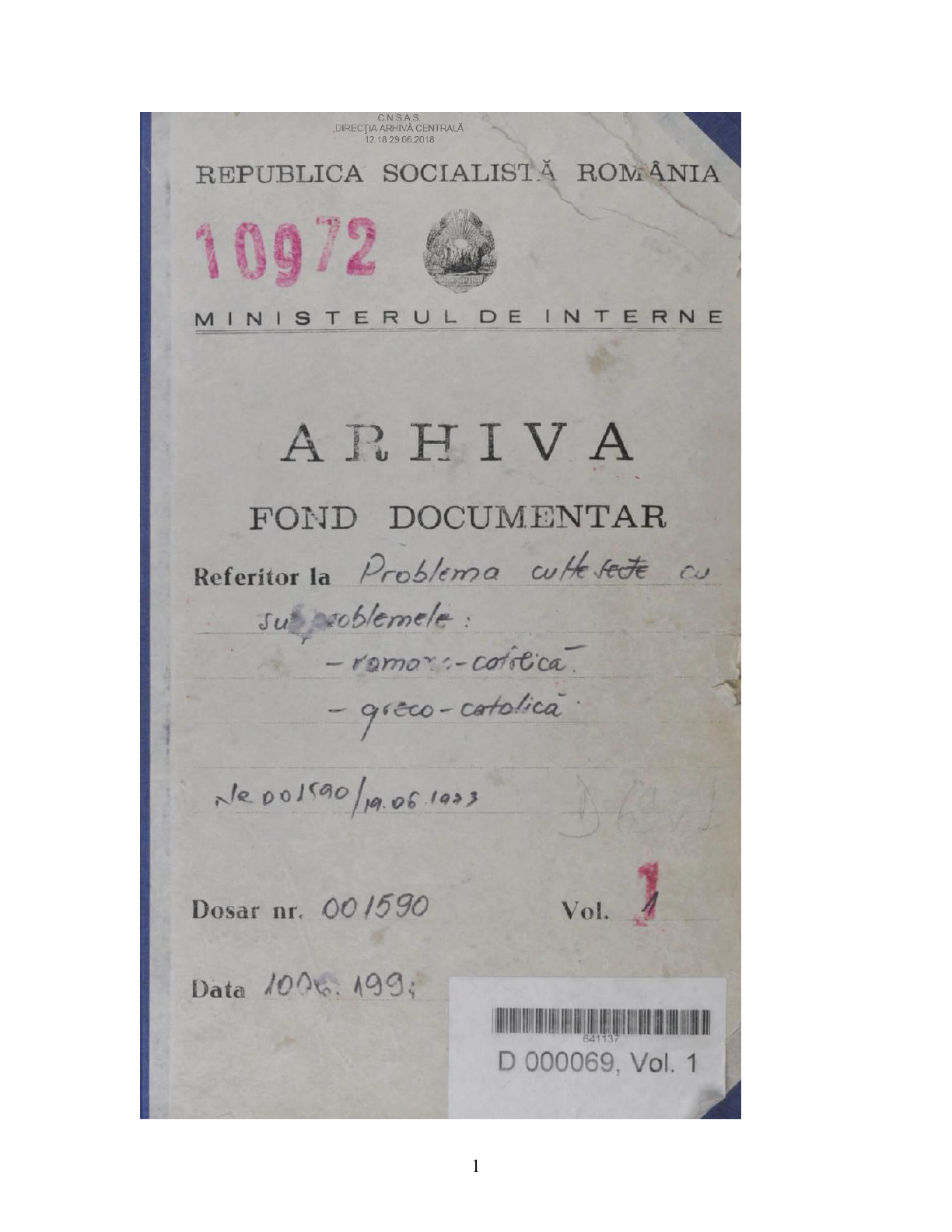 Transferul dosarelor Colecţiei Ad-hoc Biserica Greco-Cato...