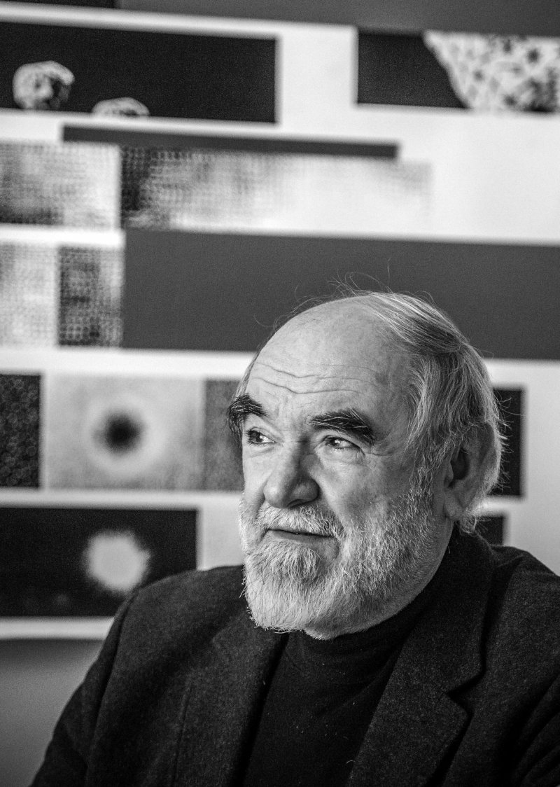 Rudolf Sikora was born on 17 April 1946 in Žilina. He studied at the University of Creative Arts from 1963 to 1969. His own artwork was exhibited in the Gallery of the Young for the first time in 1970. The onset of “normalisation” limited his possibilities to perform publicly. His activities in the years that followed were undertaken primarily in the alternative scene. He himself became an initiator of a number of artists’ gatherings and happenings (such as the 1. Open atelier, Bratislava championship in the arts movement, Albums …). His production stemmed from conceptual thinking and a new sensibility. Sikora has explored human existence, and the main inspirations for his work are topography, ecology, cosmology, time, space, and civilisation. He has attempted to transfer these features to his undertakings in architecture as well. Since the 1990s, he has favoured painting. At the same time, he has turned to the introspective exploration of his very own being. Most recently, he has become inspired by suprematism, particularly Malevich’s artwork, with which Sikora has long been intertwined in an artistic dialogue.